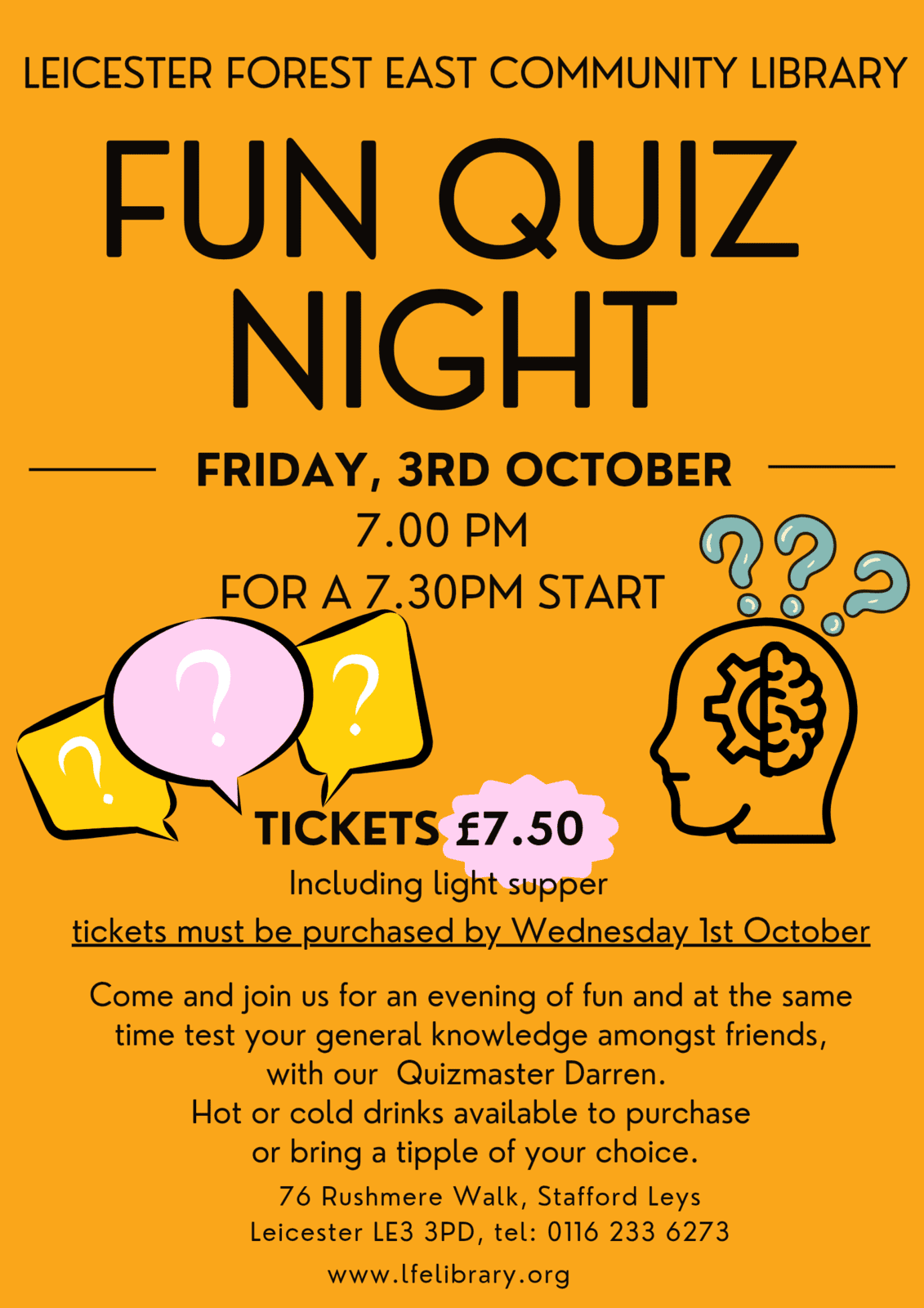 We will be holding another Quiz Night on the 3rd October - 7pm for a 7.30pm start. The cost per person is £7.50 which includes a light supper!