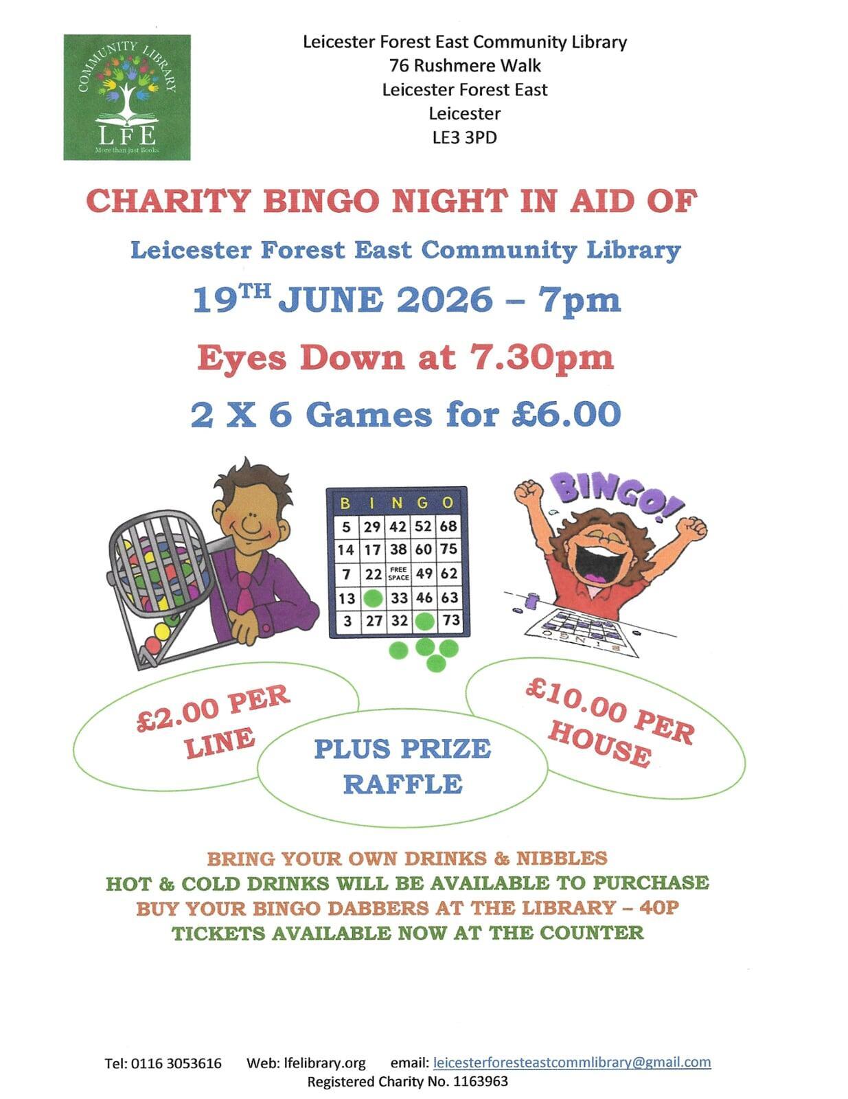 19th June 2026 - Charity Bingo Night - 7pm for 7.30pm start - £6.00 for 2 x 6 games